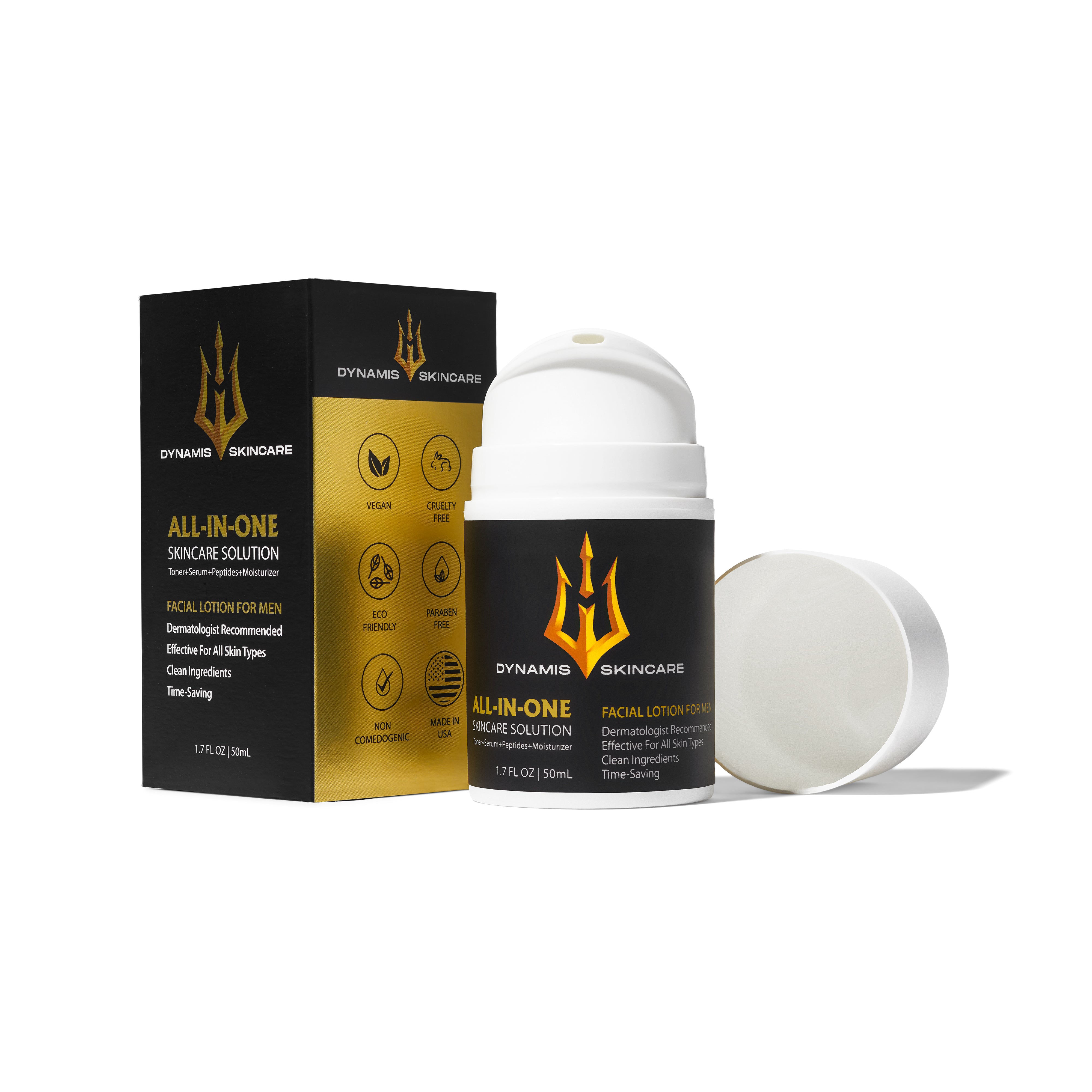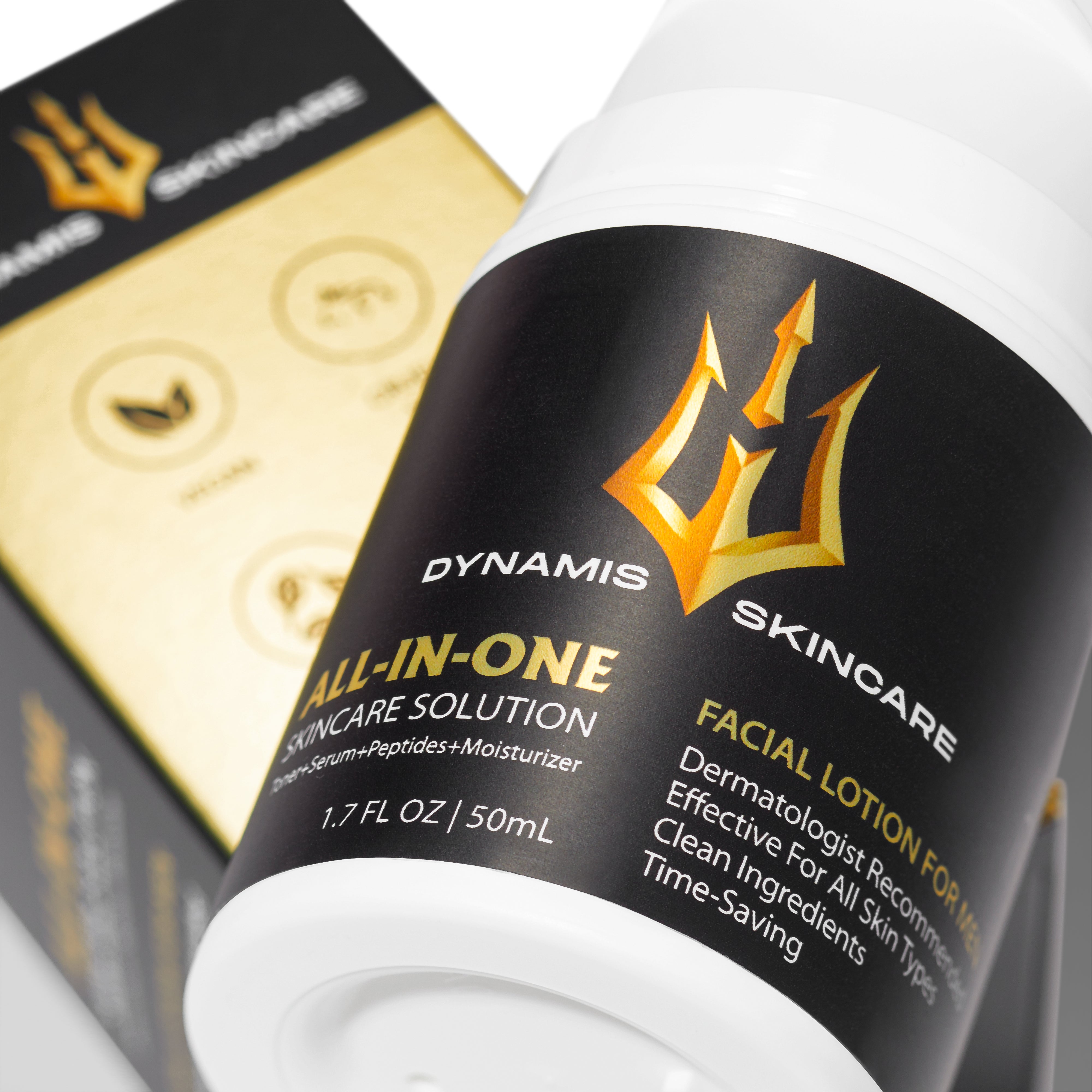 Introducing Dynamis Skincare's revolutionary product ALL-IN-ONE Skincare Solution that has everything a man needs to take care of his skin. To look and feel his best.